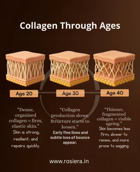 Let’s understand how skin ageing happens at a cellular level and learn natural, science-backed ways to slow it down. Discover ROSIERA’s approach to timeless beauty and how skincare, lifestyle, and intelligent serums support youthful skin.